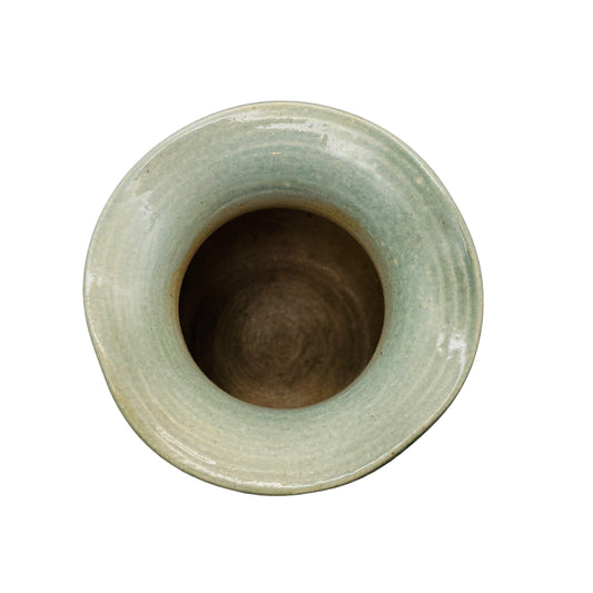Steinkeramik Vase grau grün signiert 70er 80er Jahre Vintage Keramik Deko