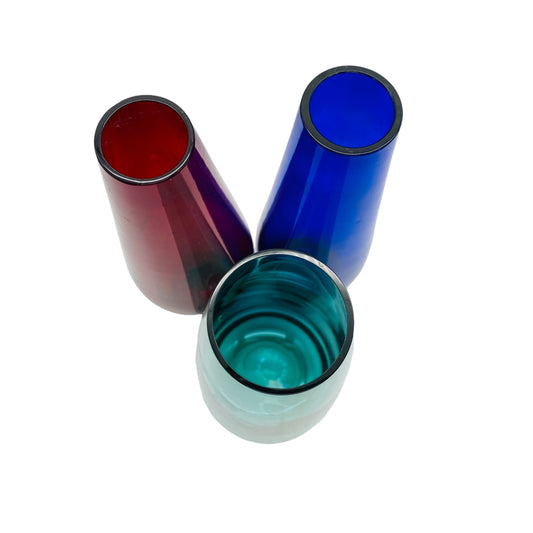 Vintage Vasen Set Blumenvasen türkis rot blau 60er 70er Jahre Mid Century Glas