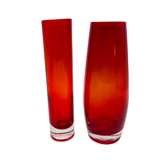 Vasen Set rot Glas Mid Century 60er 70er Überfang klar