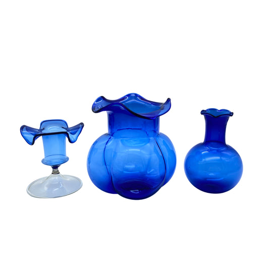 LAUSCHA Vasen Set blau 60er 70er Jahre Glas