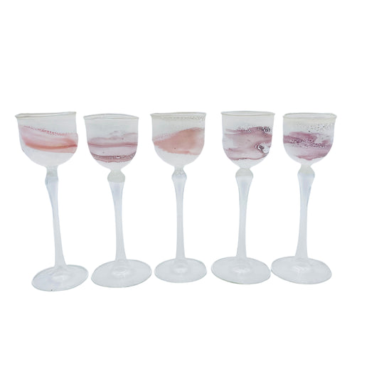 Likörgläser weiß rosa mundgeblasen handgefertigt 5er Set Glas Vintage