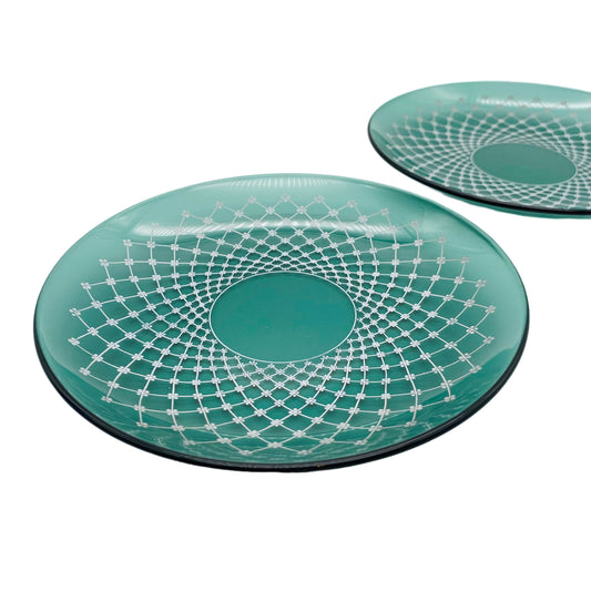 Turmalin grüne Teller Schalen Set Glas 50er Jahre Mid Century Lounge
