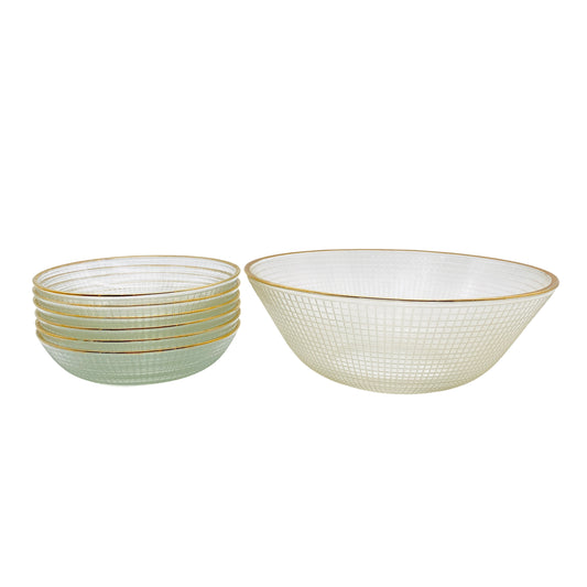 Rurglas Schüssel mit Schalen Set Glas Goldrand 60er 70er Mid Century