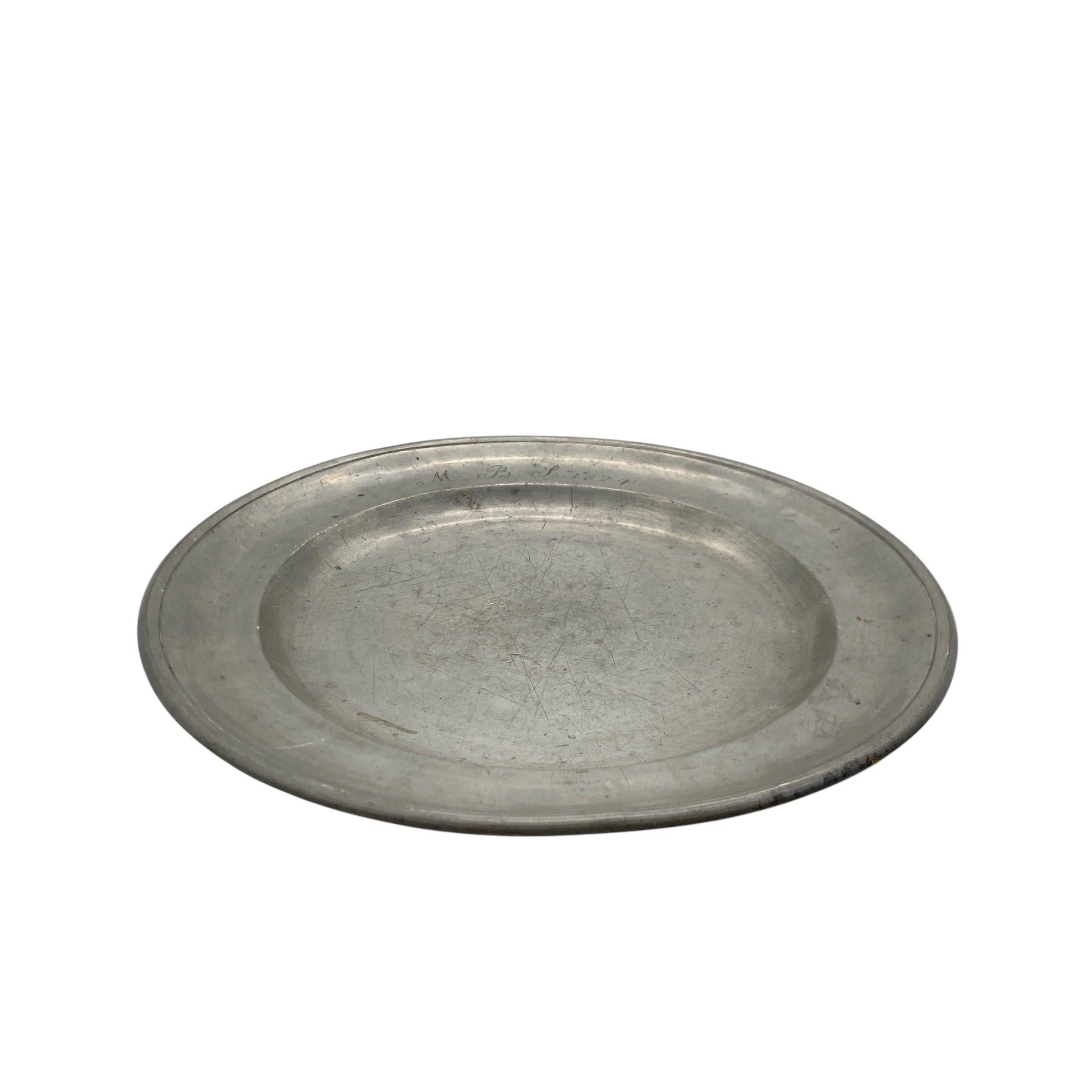 Antiker Zinnteller punziert und signiert mit M. B. J. 1824 Teller aus Zinn 19. Jh.