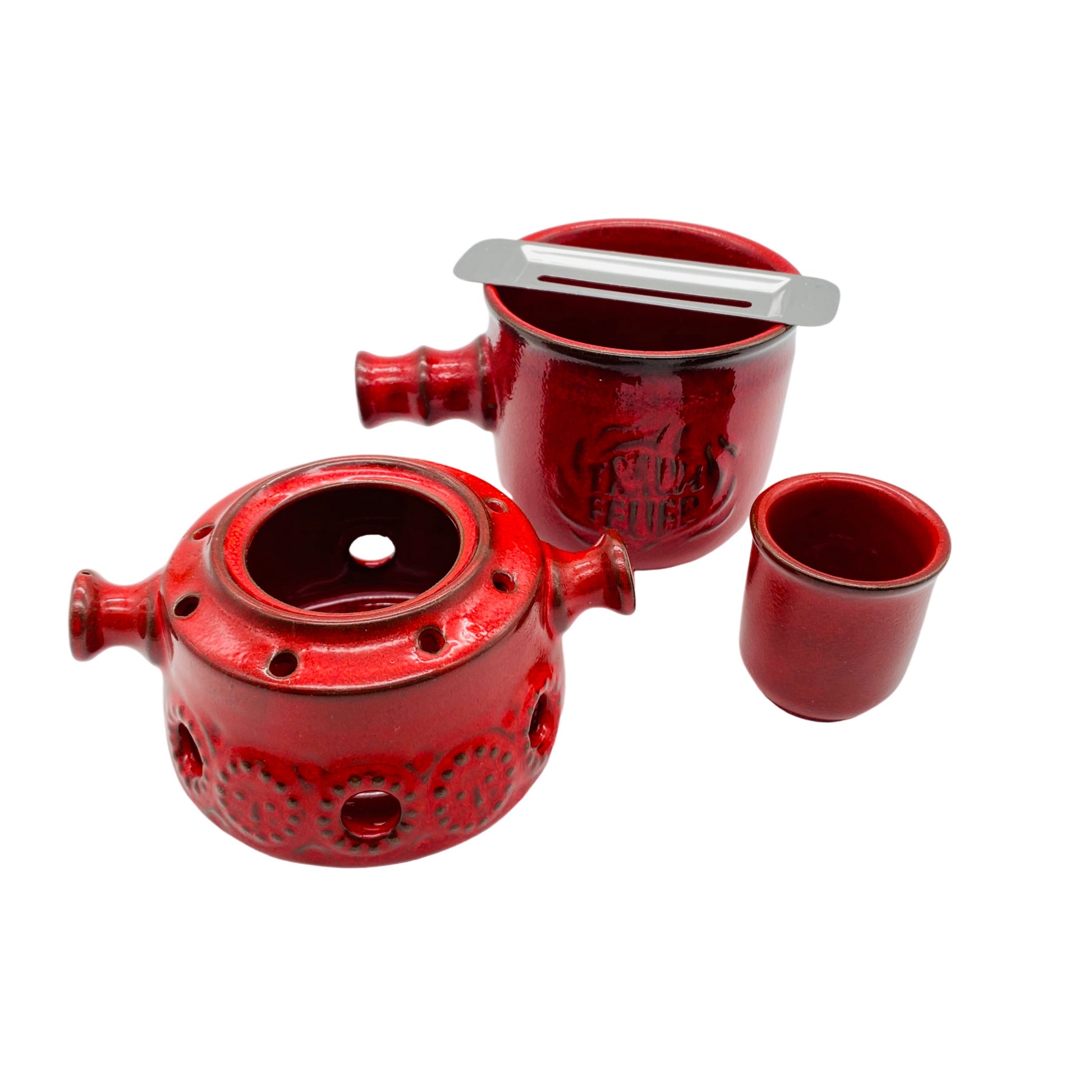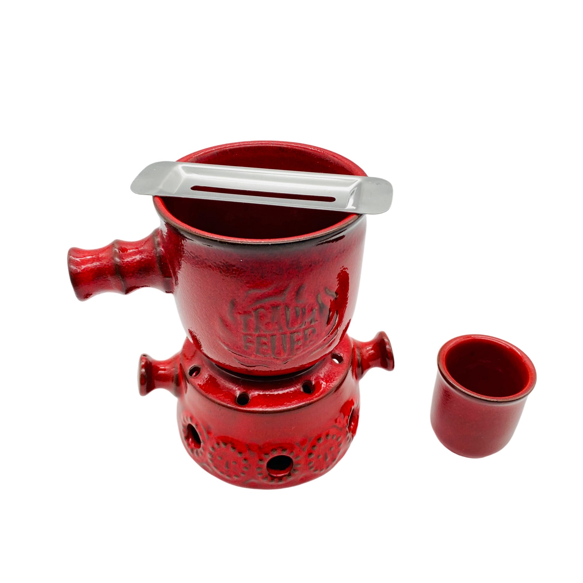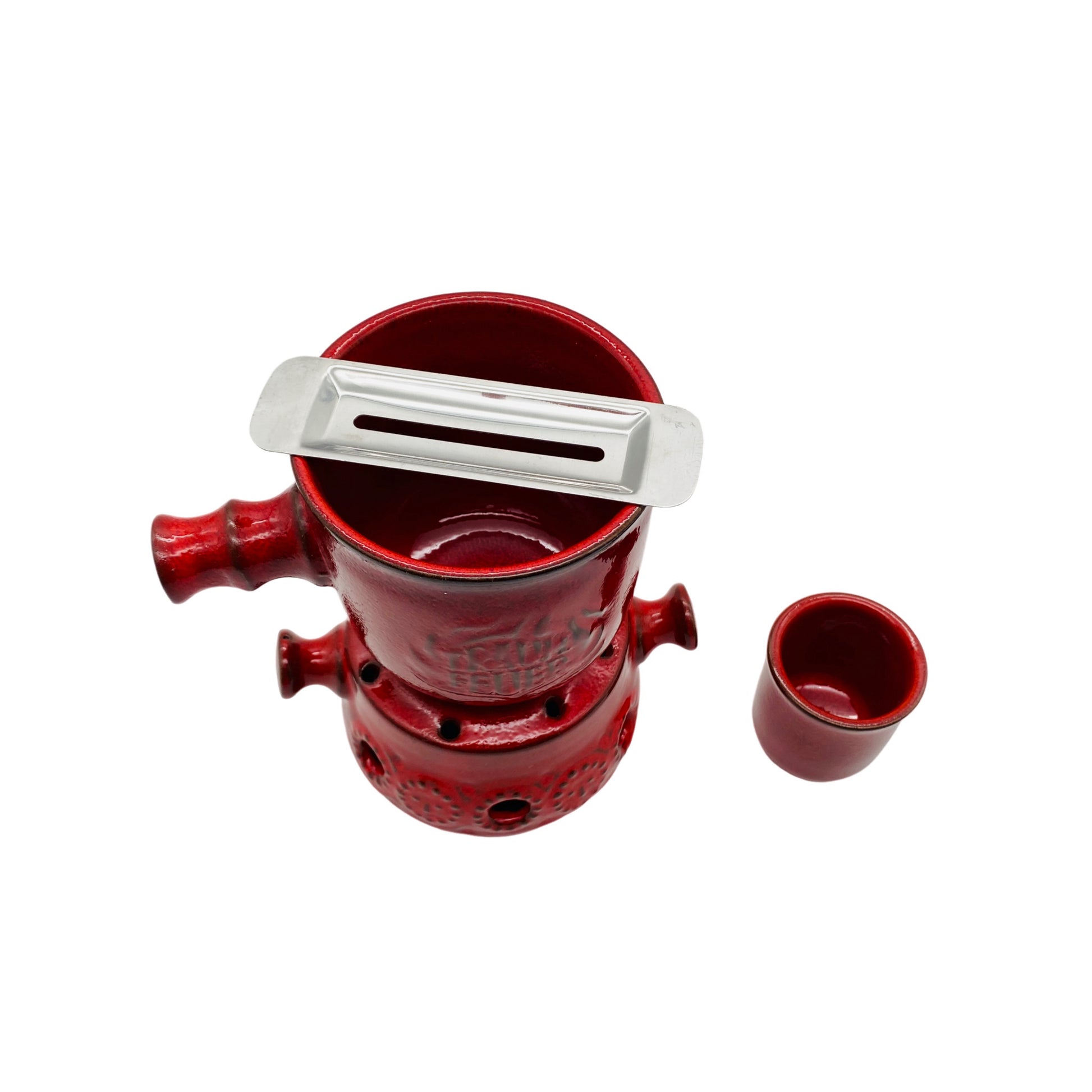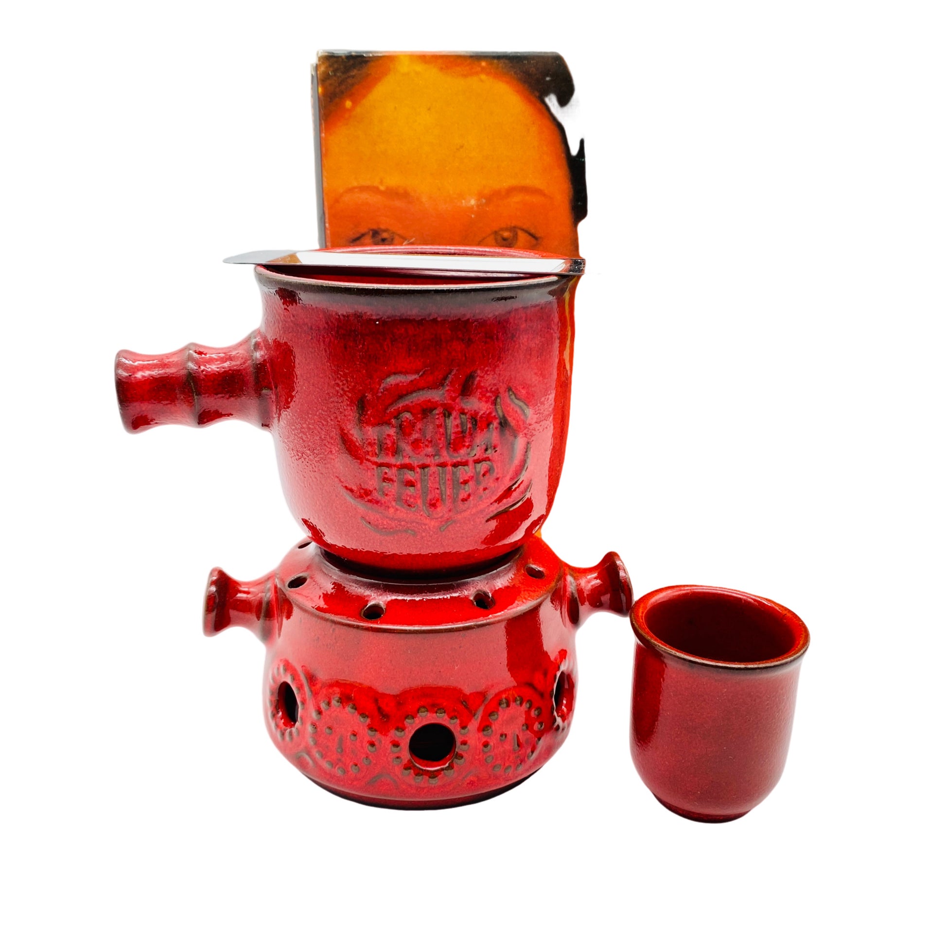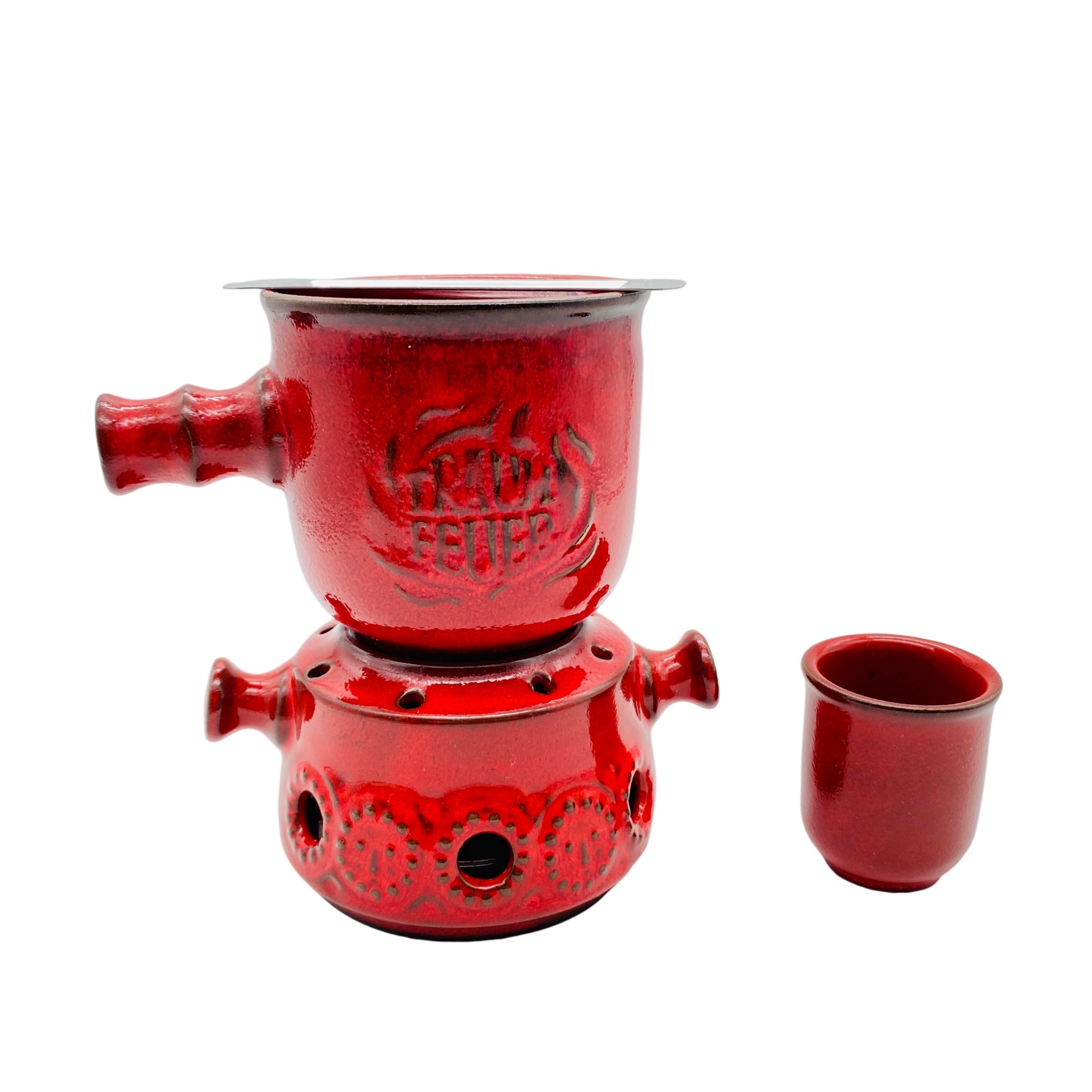 Feuerzangenbowle Keramik rot 60er 70er Mid Century Stövchen Topf Halter