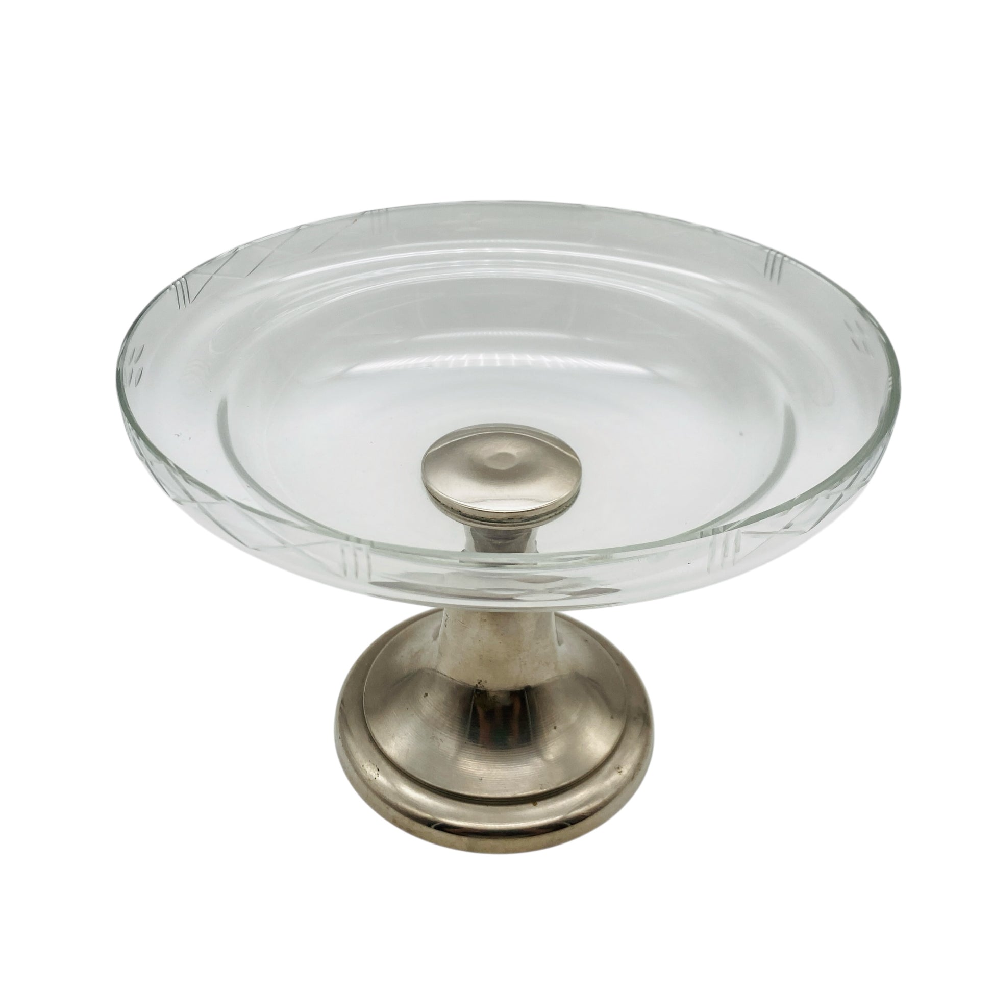 Glas Etagere Pokalschale beschliffen Metall silber Schale 50er 60er 70er Jahre Deko