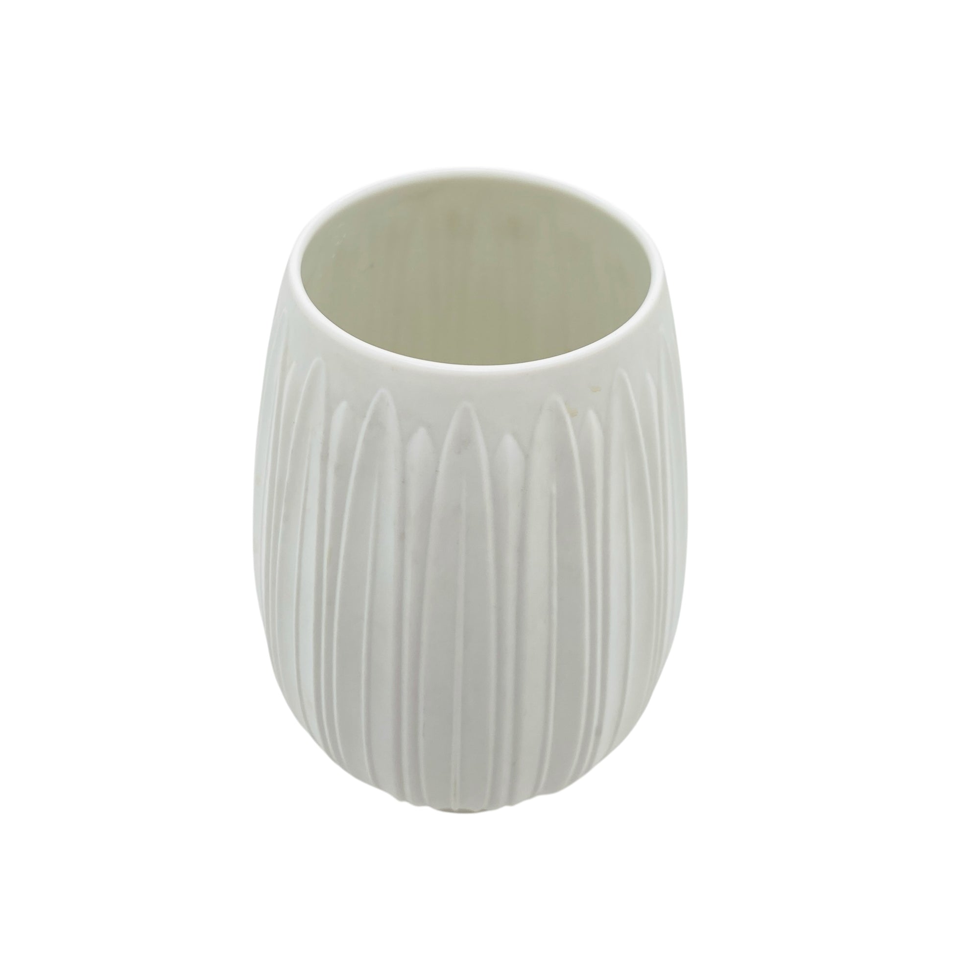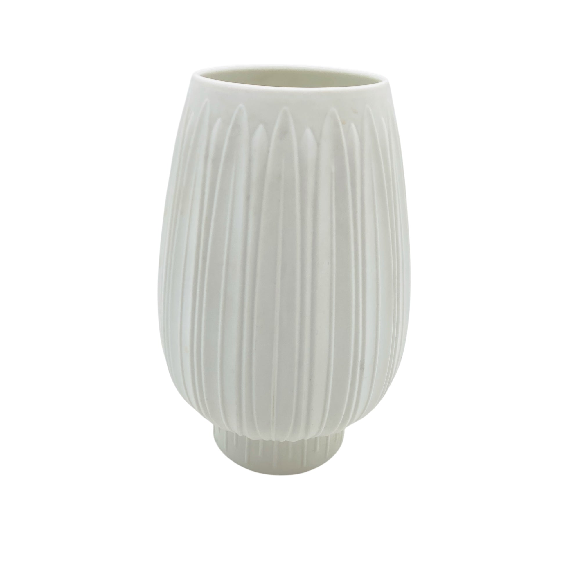 Die H & C Selb Bavaria Heinrich Vase aus weißem, mattem Bisquit-Porzellan stammt aus den 60er und 70er Jahren und steht exemplarisch für hochwertige Handwerkskunst jener Zeit. Das zeitlose Design und die samtige Oberfläche unterstreichen die traditionsreiche Produktion von Selb Bavaria. Diese Vase eignet sich ideal für Sammler und Liebhaber von mid-century Dekor, die authentische und elegante Porzellanobjekte schätzen.
