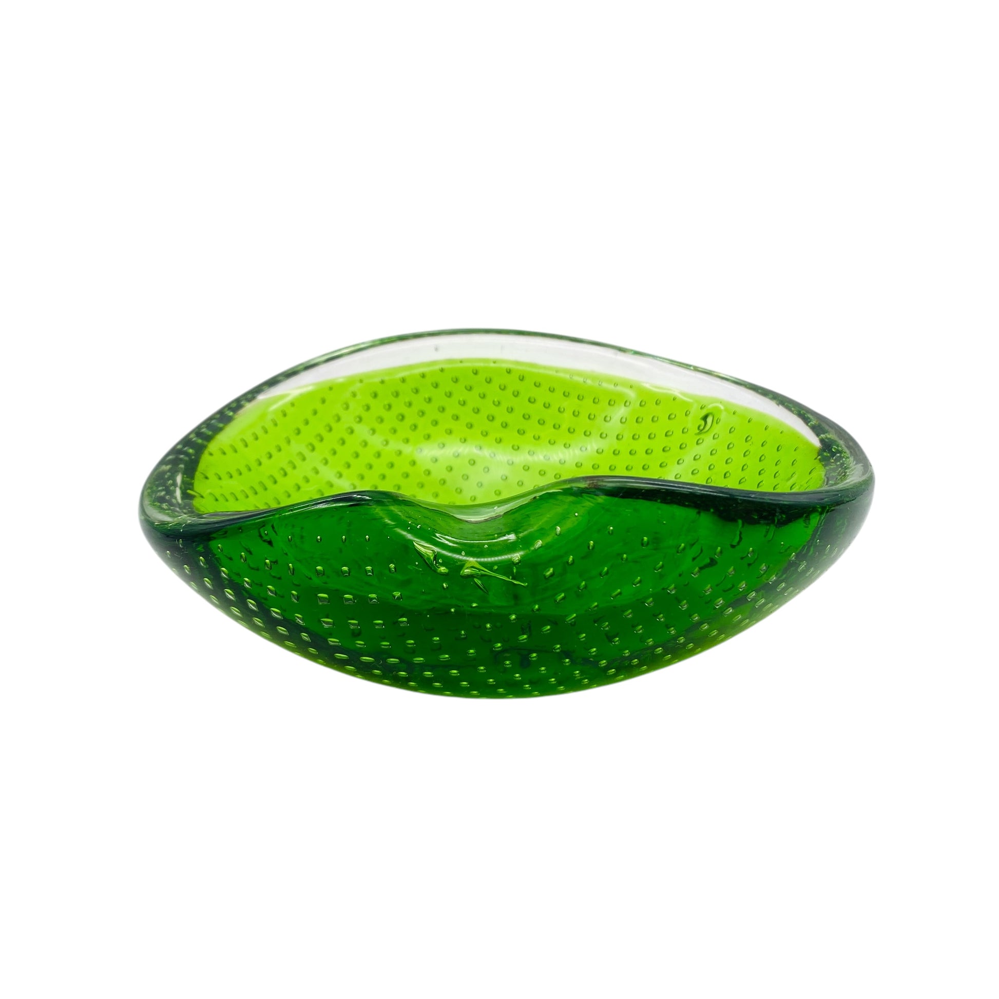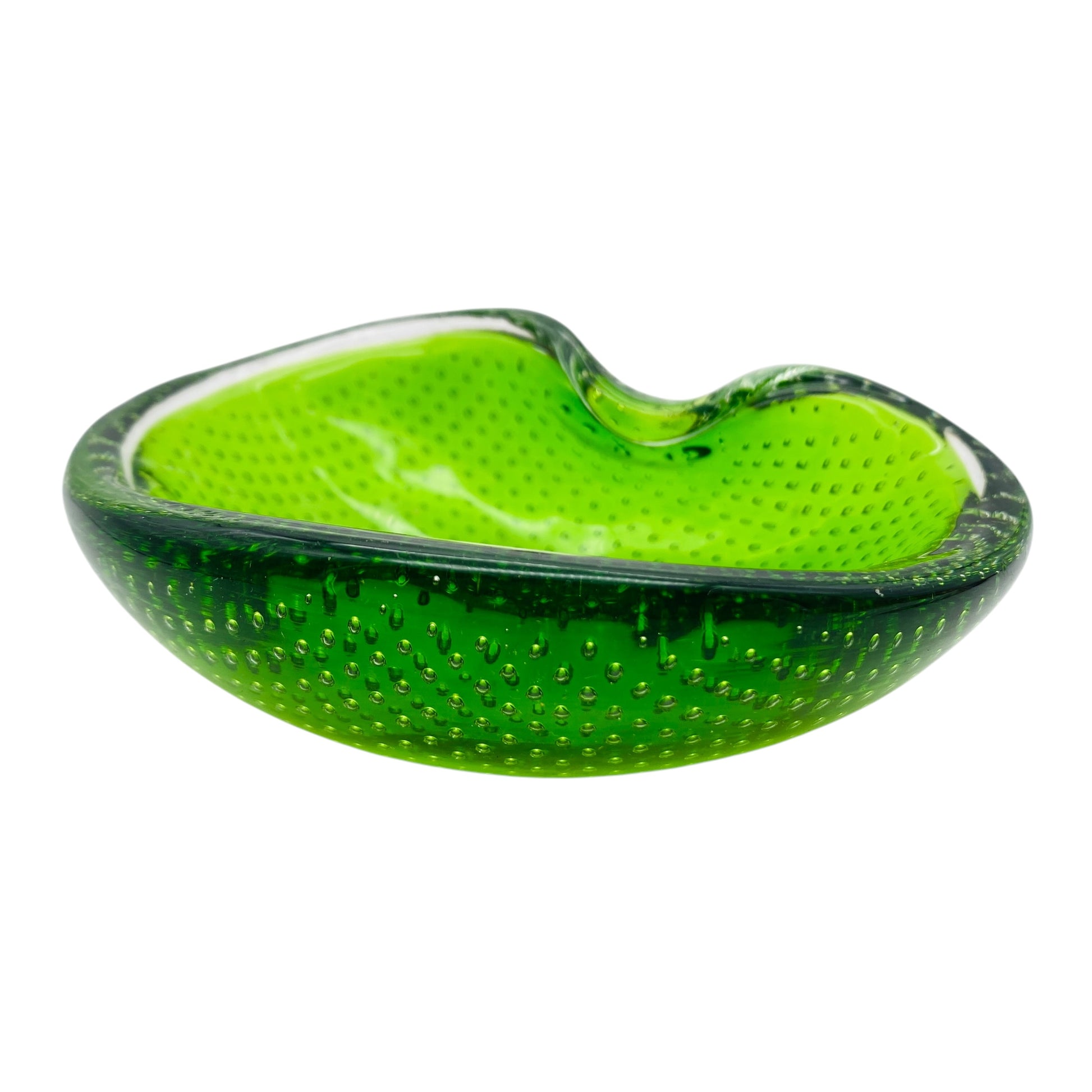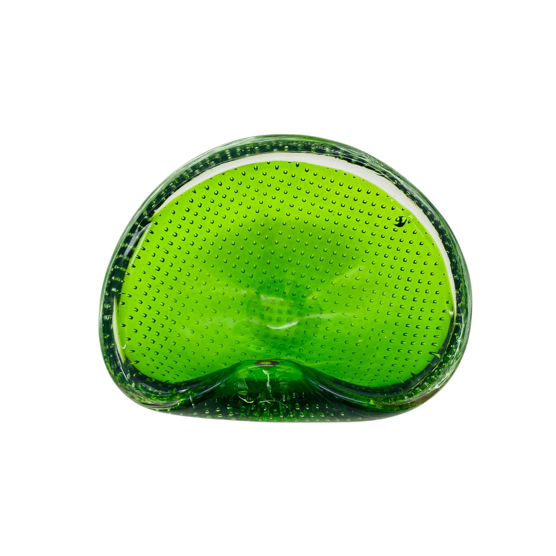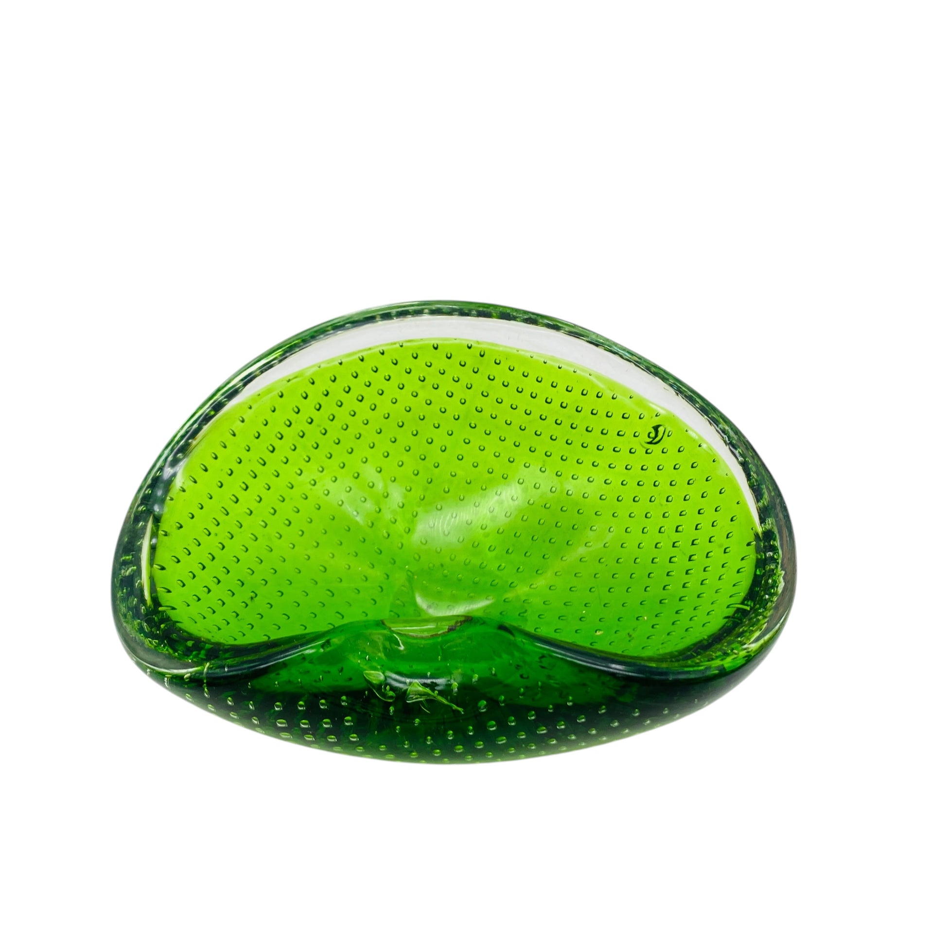 Mid Century Aschenbecher Schale Ascher grün Glas Luftblasen 60er 70er Jahre Dekoration