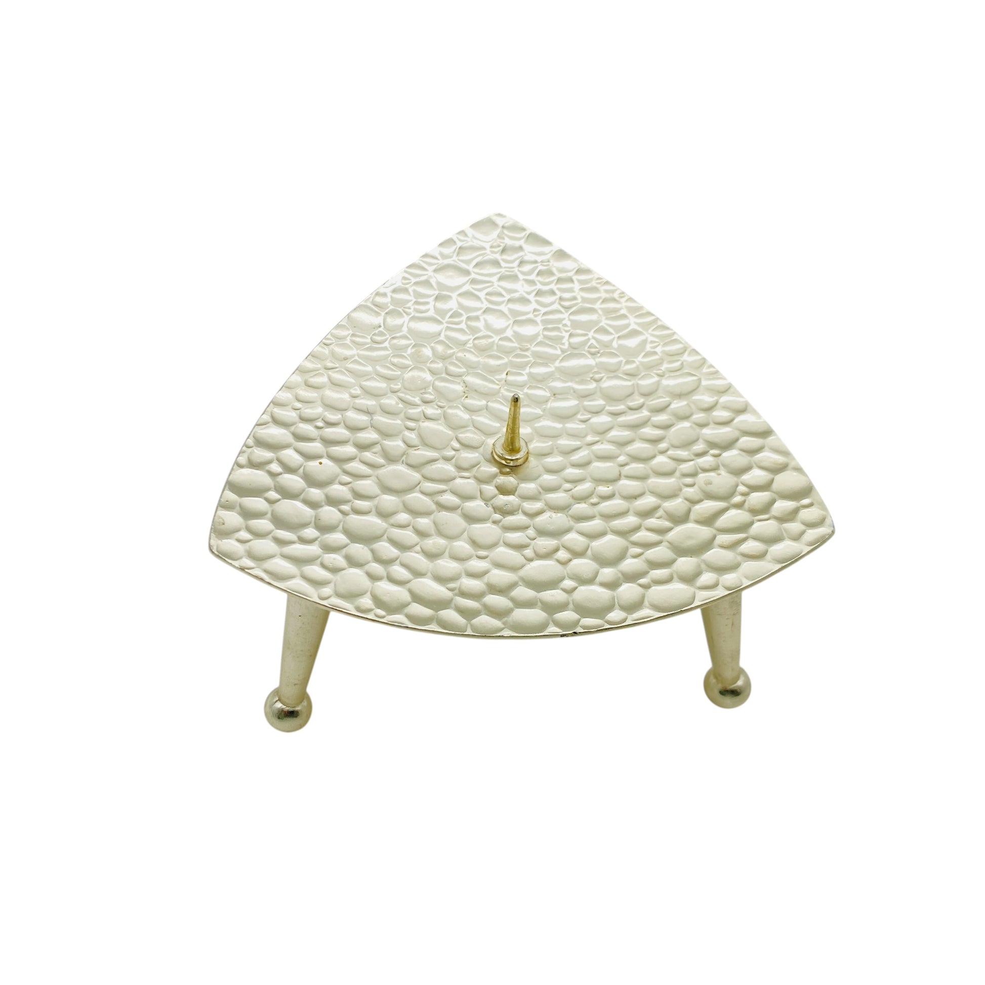 Dieser Mid Century Kerzenständer aus goldfarbenem Aluminium besticht durch seine charakteristische Hammerschlag-Optik, die den Stil der 60er und 70er Jahre authentisch widerspiegelt. Das hochwertige Material kombiniert Leichtigkeit mit Stabilität, während das dezente Vintage-Design jedem Raum eine elegante, zeitlose Atmosphäre verleiht. Ideal für Liebhaber von Mid Century Modern und Vintage-Dekorationen, setzt dieser Kerzenständer stilvolle Akzente auf jedem Tisch oder Sideboard.