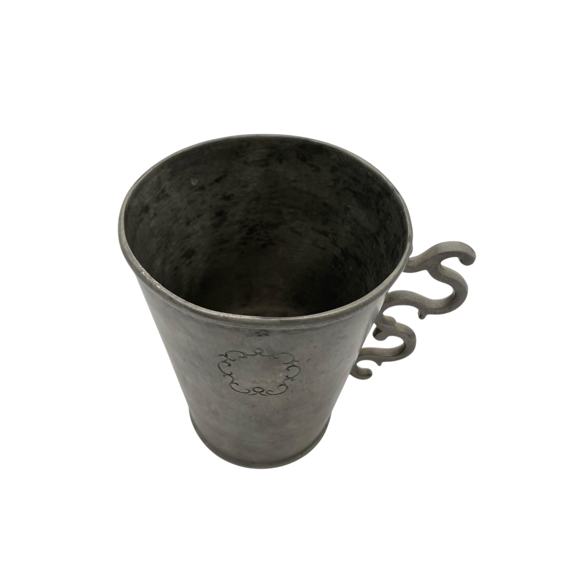 Mid Century Zinn Becher 40er 50er Jahre mit Henkel Ornament Dekoration