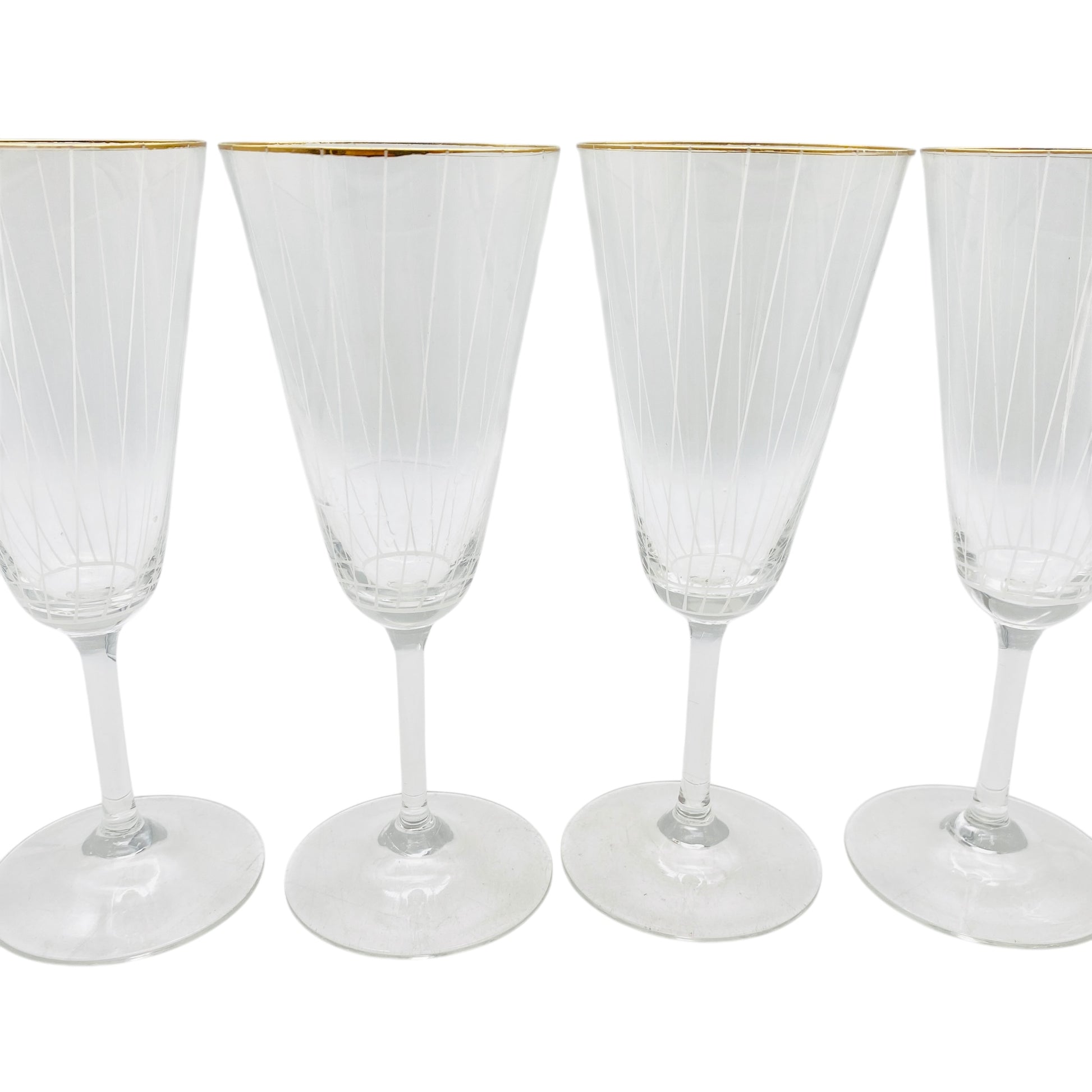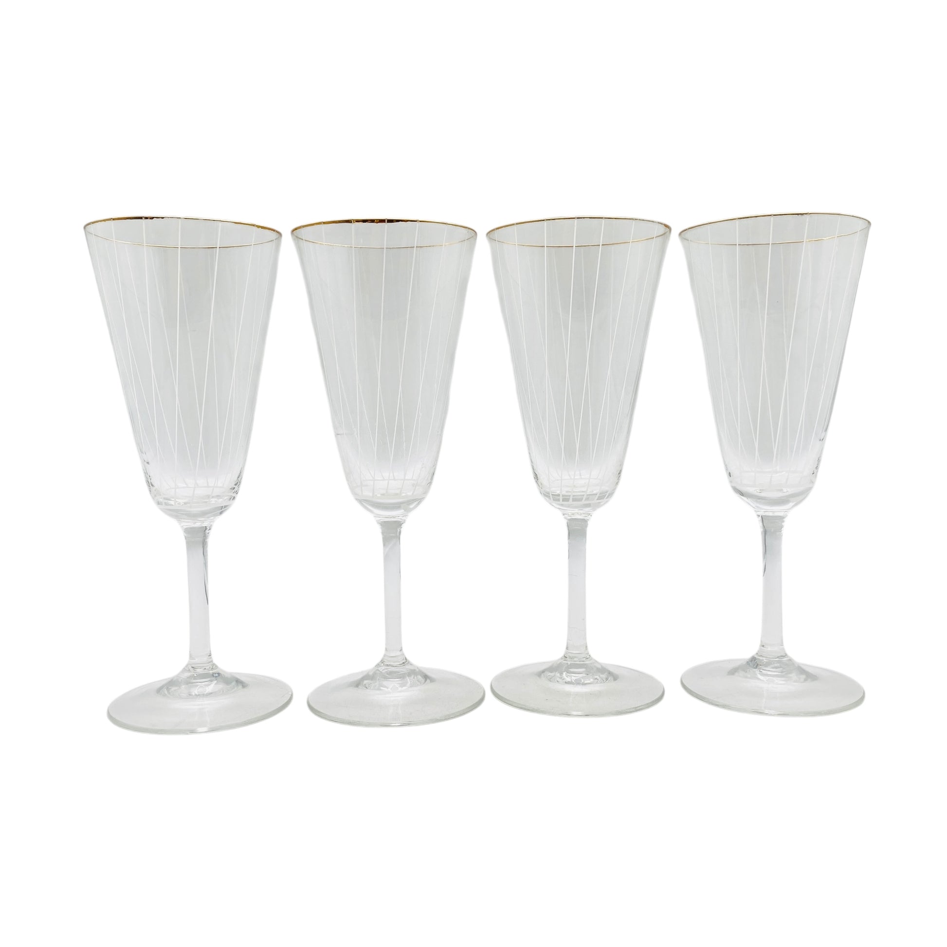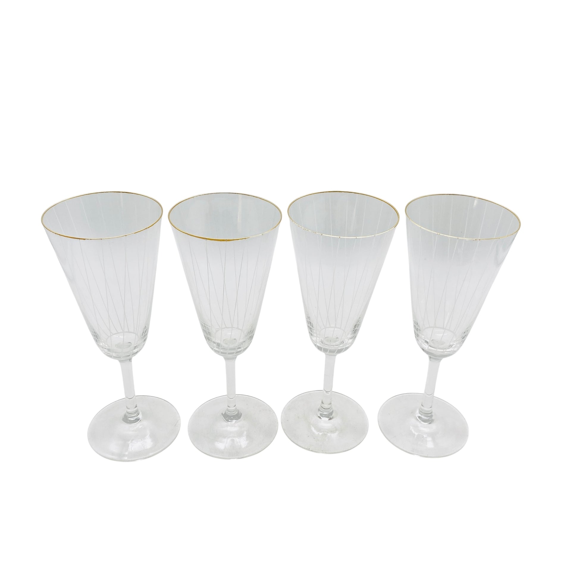 Poschinger Sektgläser 4er Set Goldrand Emaille Dekor Streifen 50er 60er Jahre
