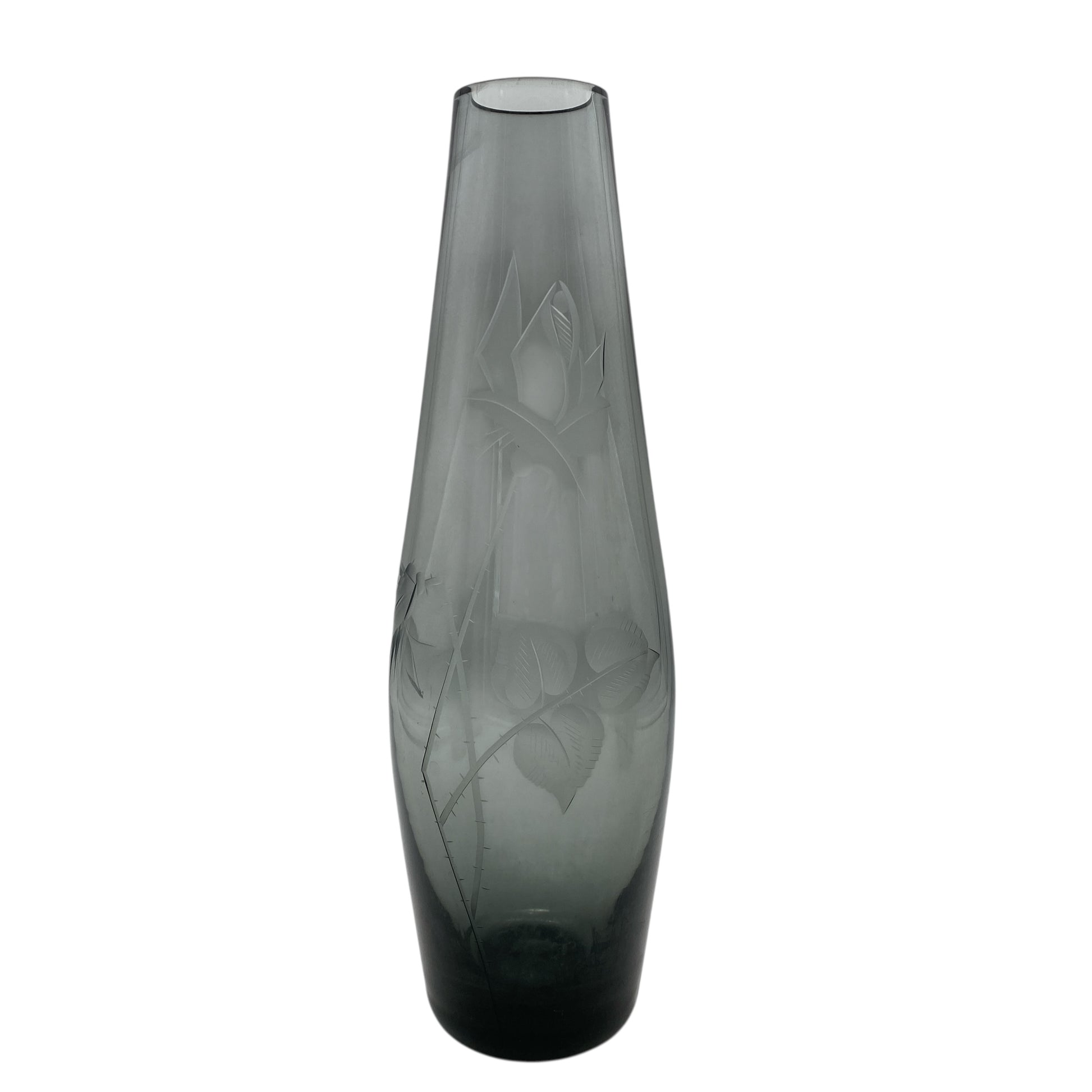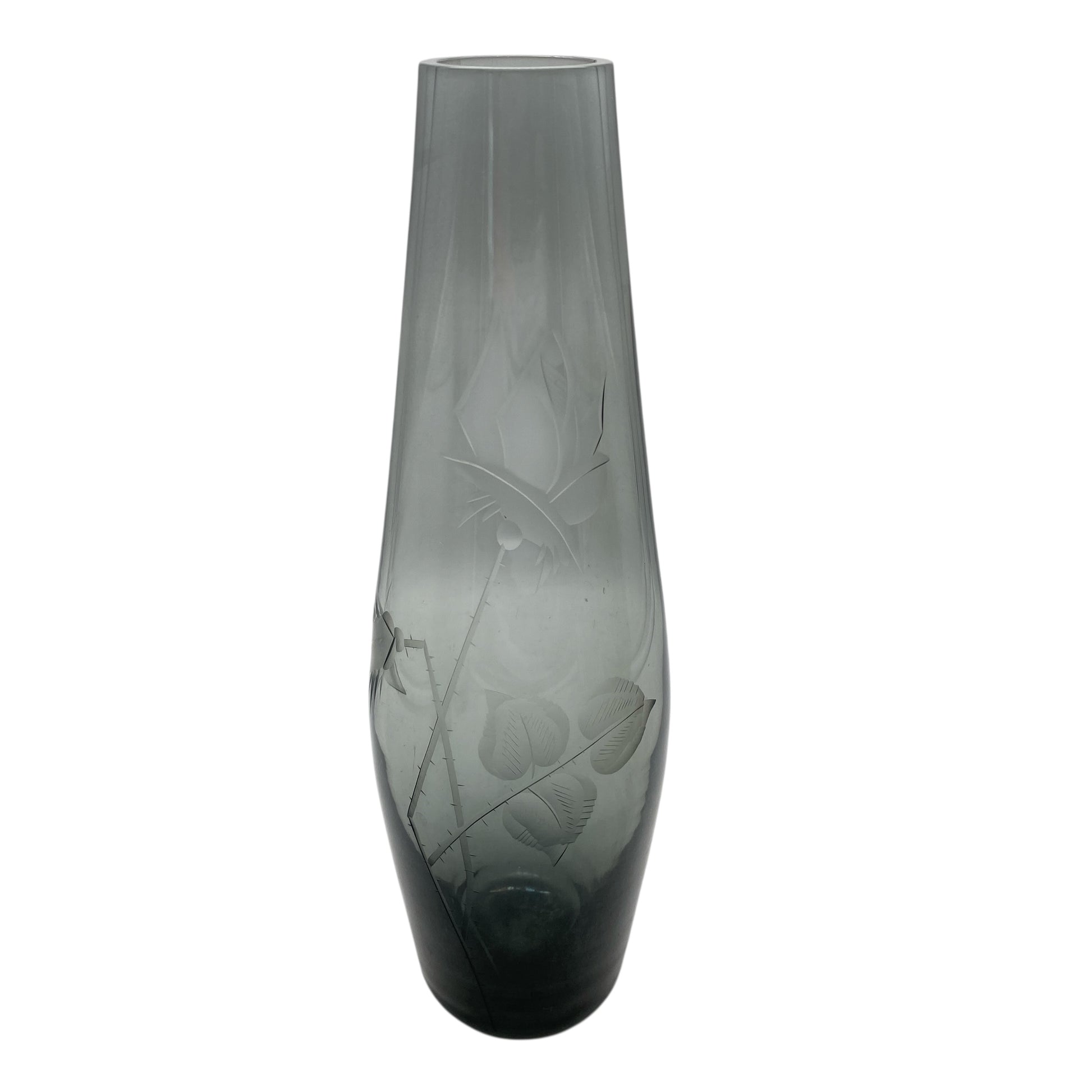 Rauchglas Vase mit Blüten Rosen beschliffen 60er 70er Jahre Mid Century Design
