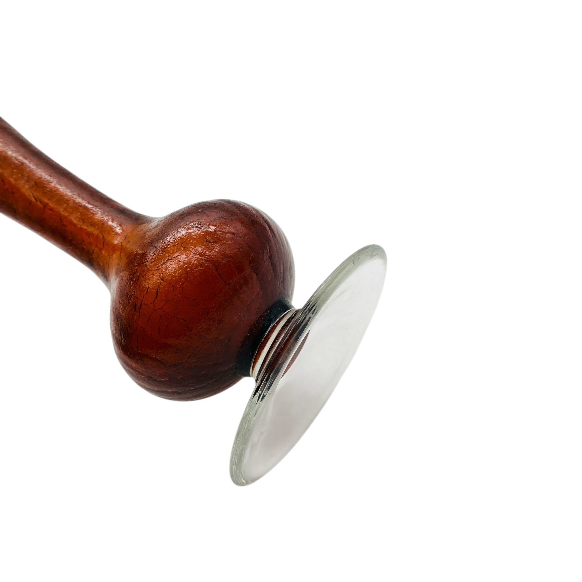 Diese Vintage Blumenvase besticht durch ihr charakteristisches Craquelee-Glasdesign aus den 1970er Jahren. Die braune Farbgebung und der transparente Fuß verleihen ihr eine elegante, zeitlose Ausstrahlung. Ideal für Liebhaber authentischer Retro-Dekorationen, verbindet sie nostalgischen Charme mit hochwertiger Handwerkskunst. Ein stilvolles Highlight für jede Einrichtung, das Blumen auf besondere Weise in Szene setzt.