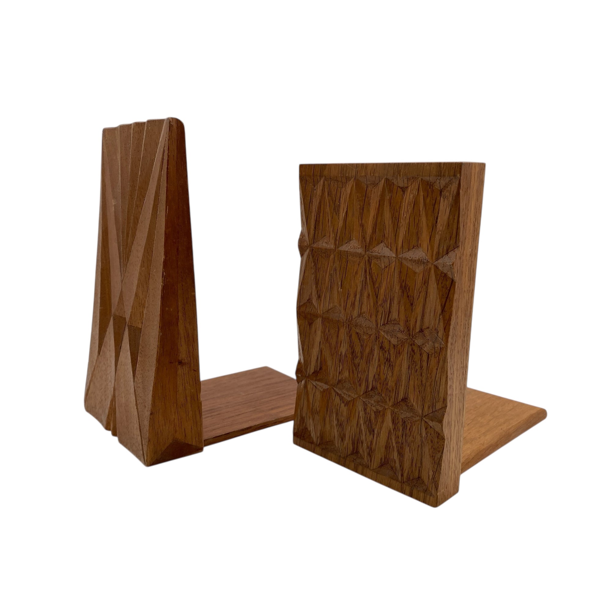 Diese handgefertigten Vintage Bücherstützen aus Holz stammen aus den 60er und 70er Jahren und vereinen funktionale Stabilität mit zeitloser Ästhetik. Jedes Stück besticht durch sorgfältige Handarbeit und verleiht Ihrem Bücherregal einen authentischen Retro-Charme. Ideal, um Ihre Lieblingsbücher stilvoll zu präsentieren und gleichzeitig vor dem Umfallen zu schützen. Ein hochwertiges Dekorationsobjekt für Liebhaber klassischer Einrichtung.