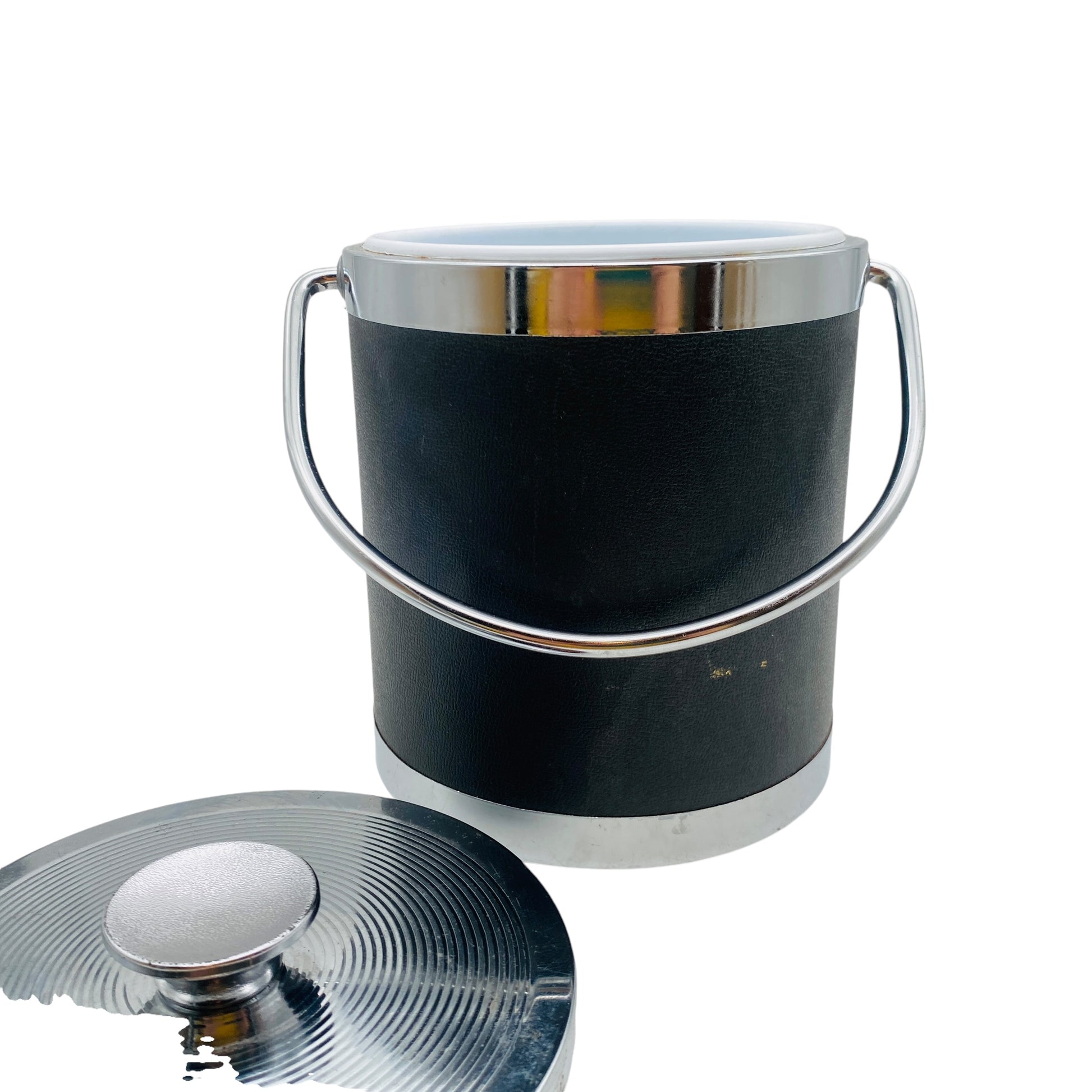 Vintage Eiseimer schwarz Kunststoff silber 70er 80er Jahre Japan