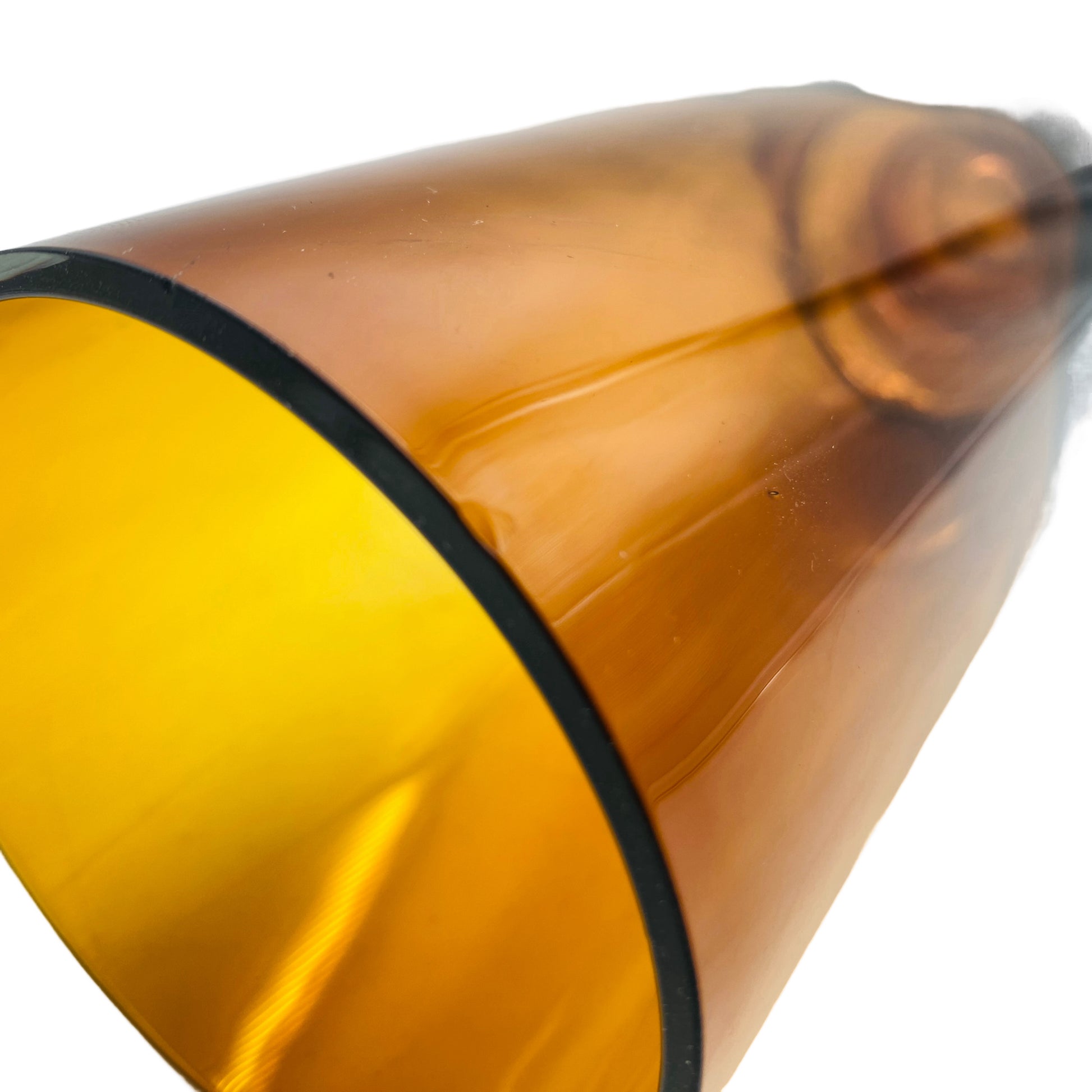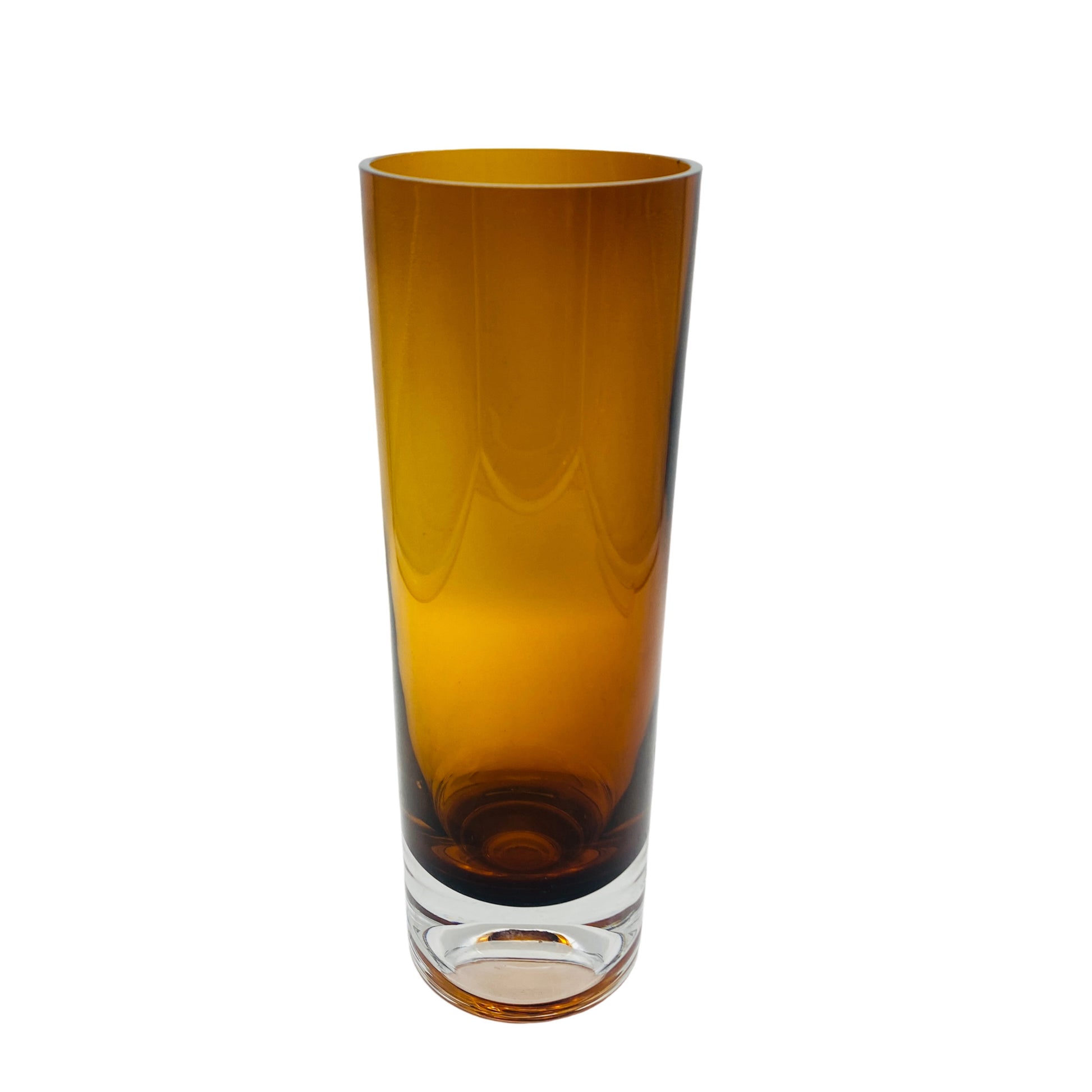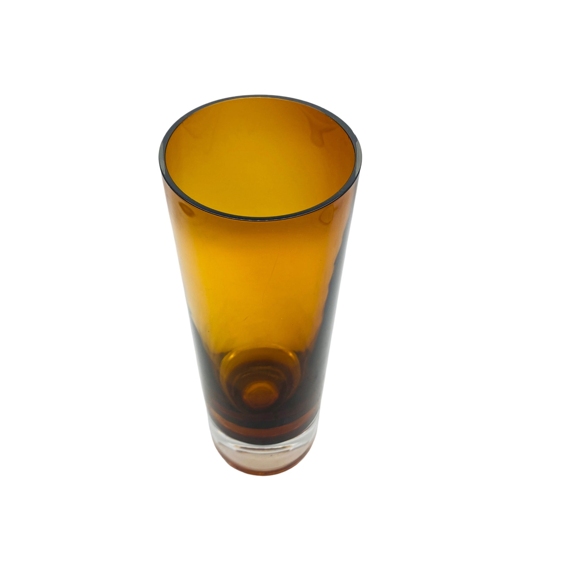 Diese Vintage Vase ist ein optisches Highlight und eine einzigartige Dekoration im Mid Century Stil. Das bernsteinfarbene Glas und das typische Design der 60er und 70er Jahre machen diese Vase zu einem besonderen Hingucker. Perfekt für Liebhaber von Retro und Vintage Design.