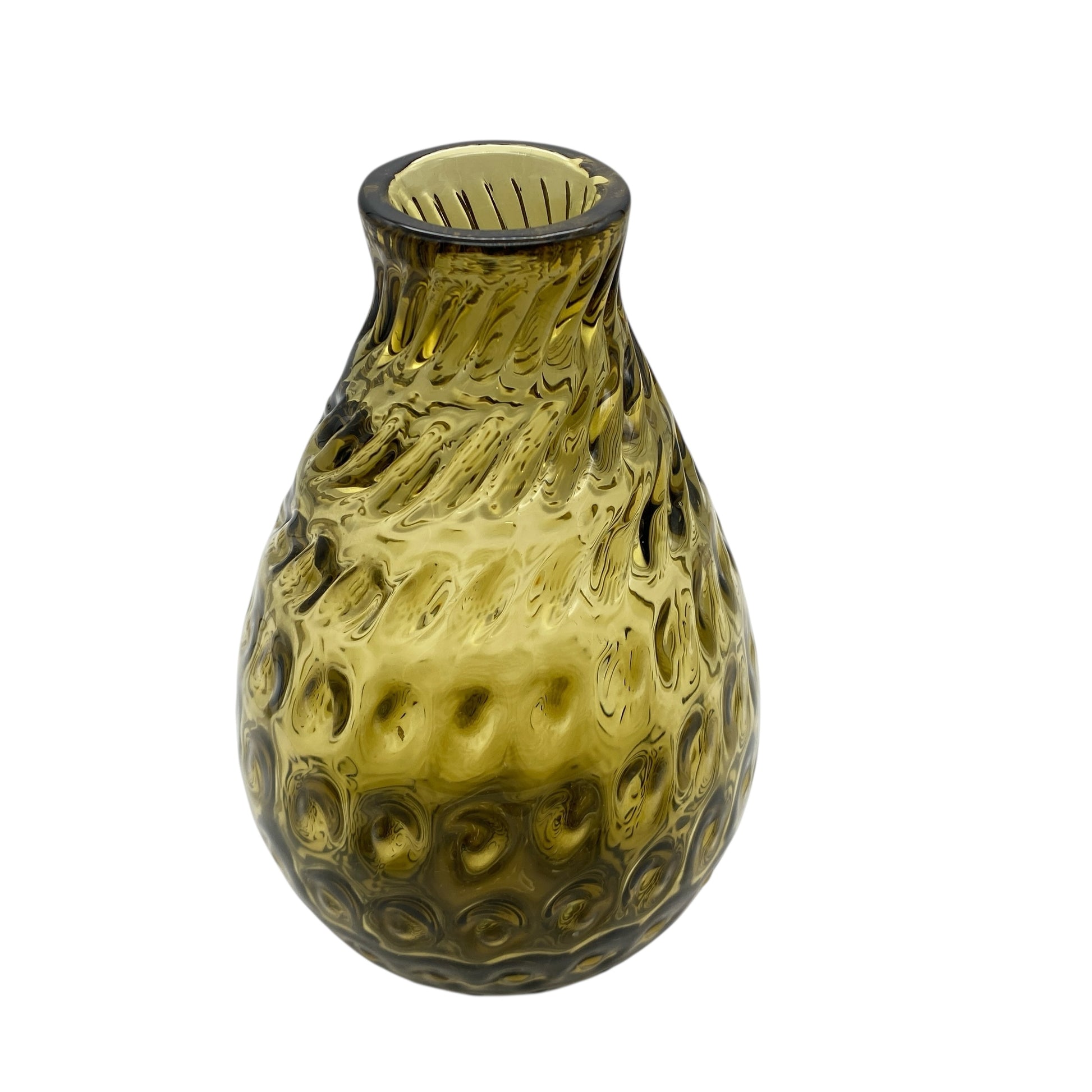 Diese Vintage Vase in warmem Gelb und Bernstein stammt aus den 60er oder 70er Jahren und besticht durch ihr gedrehtes Dekor, das handwerkliche Präzision widerspiegelt. Ihr schweres Gewicht unterstreicht die hochwertige Verarbeitung und macht sie zu einem markanten Blickfang in jedem Raum. Ideal für Liebhaber authentischer Mid-Century-Designs, verbindet sie zeitlose Ästhetik mit robuster Qualität.