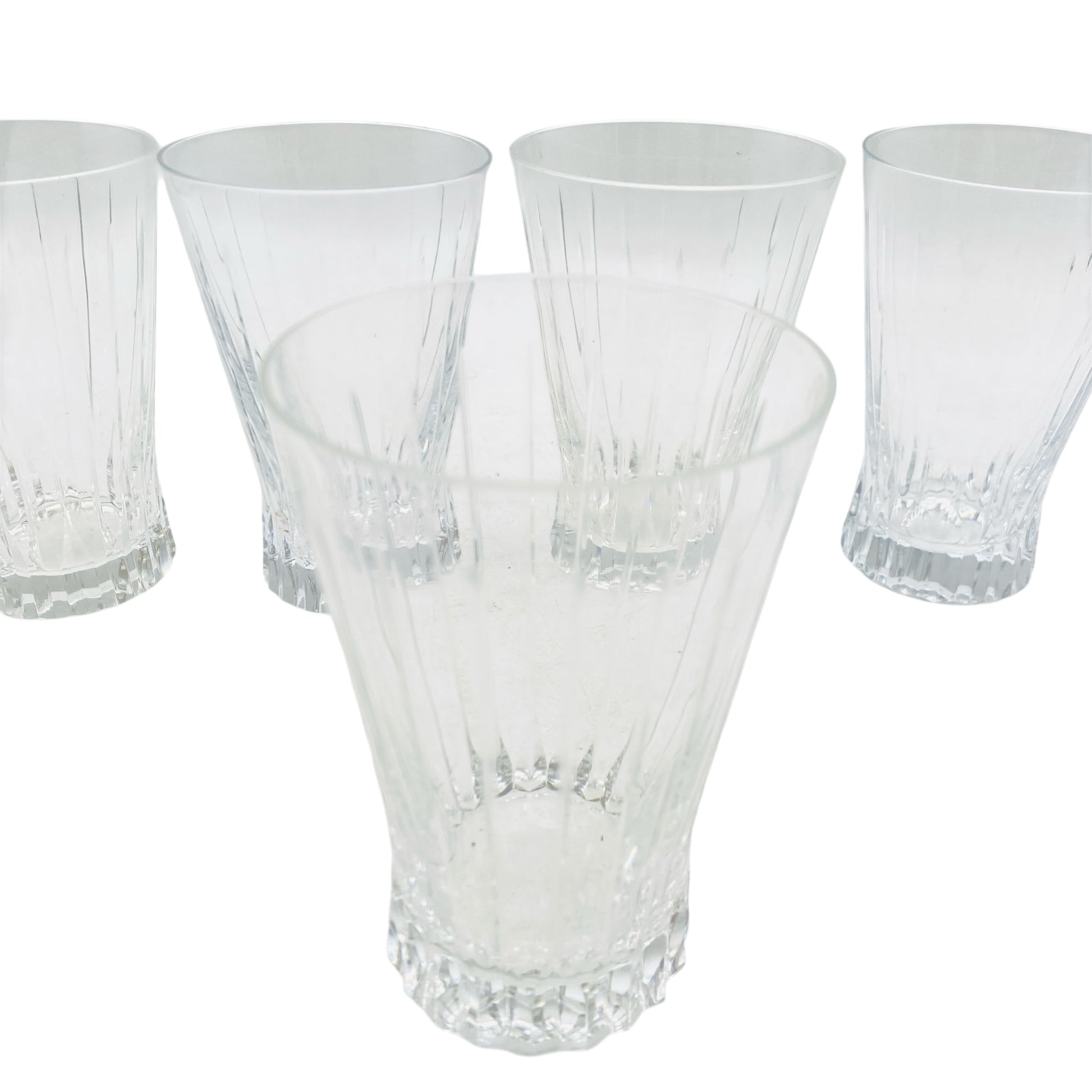 Vintage Wassergläser 5er Set beschliffen 1970er Jahre konisch transparent Glas